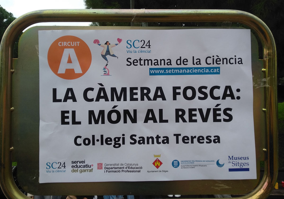 L’alumnat de l’optativa de Ciències Aplicades de 4t d’ESO ha participat a l’activitat la Ciència al Carrer a Sitges dins de Setmana de la Ciència amb l’experiència “La càmera fosca: el món al revés”. Al poder entrar dins d’aquest muntatge es posa de manifest la simplicitat de la naturalesa de la llum, que al passar per un petit orifici projecta la imatge invertida. Volem agrair al Centre de Recursos del Garraf per la iniciativa i les facilitats donades.