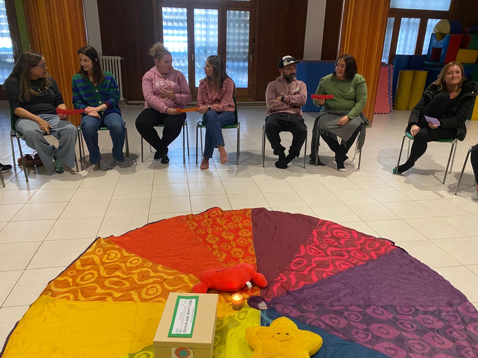 Aquesta setmana, hem engegat el nou projecte “Escola de Famílies”. Un grup de famílies, acompanyades per dues de les nostres mestres, la Núria i la Sònia, ha gaudit de la primera trobada mitjançant una sessió de Mirar-te.
